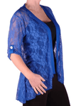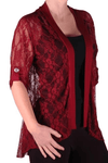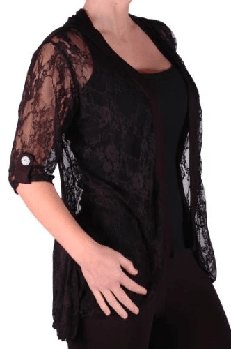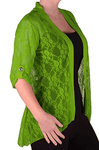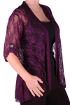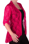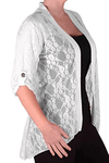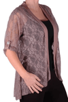 • Elegant Lace, Chic Draped Style, Flowing Open Front, Short Sleeves.
