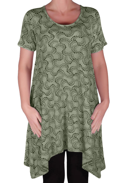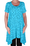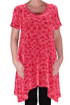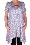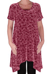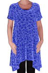 Faith Long Tunic Flared Uneven Hem Print Short Sleeve Top