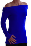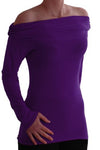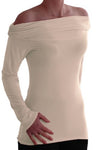 • Easy Pull Over Style, Off Shoulder Neckline, Long Fitted Sleeves, Hem Hits Below Hip.
