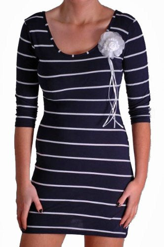• Bardot Style Scoop Neckline, 3/4 length Sleeves.