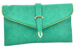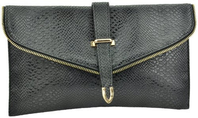 • Folder Over Press Stud Closure, Zipped Inside Pocket.
