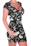 Kelsi V Neck Cap Sleeve Polka Dot Skull Bodycon