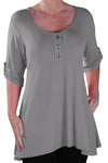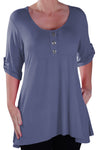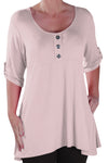 • Easy Pullover Styling, Short Sleeves, Front Button Detail, Button Sleeve Detail.