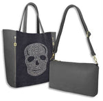 Skull Print Faux Leather Tote Bag