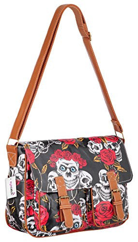 • Carry Your Essentials in this Stylish Skull and Roses Oil Cloth Bag By Brand EyeCatch.