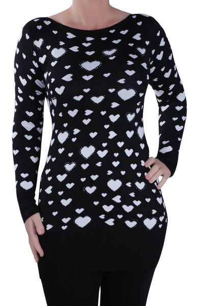 • Featuring Long Sleeves, Crew Neck, Heart Pattern.