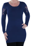 • Solid Colour, Proportioned to Flatter, Scoop Neck Line, Long Sleeve, Ribbed Cuffs and Hemline.