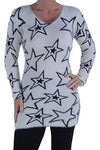 • Scoop Neck, Star Pattern, Long Sleeves.