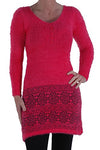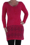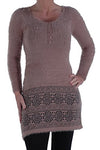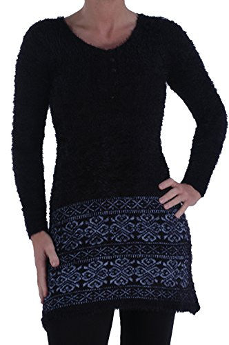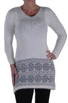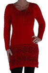 • Scoop Neck, Button Detail, Long Sleeves, Border Detail.