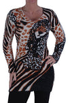 • Scoop Neck, Leopard Pattern, Long Sleeves.