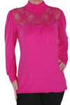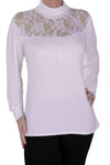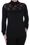 • Gathered Detail, Long Sleeves. Roll Neck. Lace Detail. Straight Hem. Pullover Style.