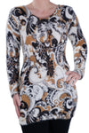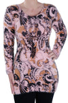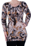 • Scoop Neck, Paisley Pattern, Long Sleeves.