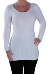 • Long Sleeves, Scoop Neck, Cable Detail, Fitted Stretch.