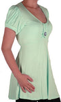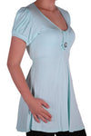 • Features Diamond Detailed Button, Gathered Short Sleeves.
