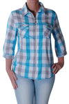 • Cuffed 3/4 Roll Up Short Sleeve with Button Detail.