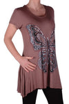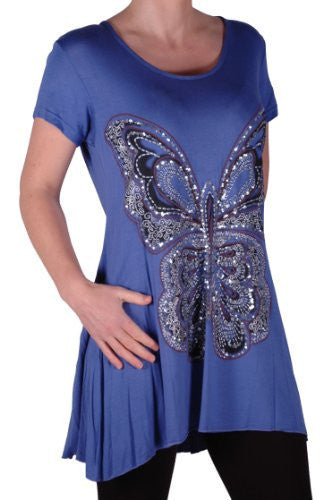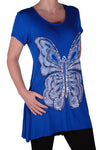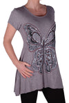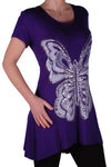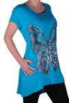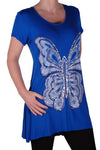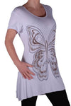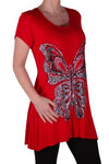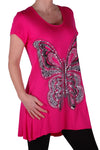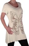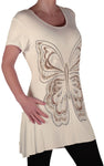 EyeCatch Plus - Butterfly Motif Long Womens Short Sleeve Loose Stretch Ladies Top Sizes 14 - 28
