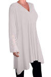 • Soft Jersey Fabrication Drapes Fluidly In To An Asymmetric Hem.