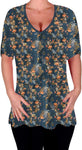 Features Squiggle Design, V Neckline, Short Sleeves, Button Sleeve Detail.