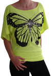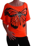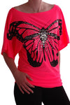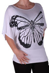 Amoretta Boat Neck Batwing Butterfly Graphic Tops