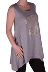 • Gold Skull Detail, Solid Colour, Jersey Fabrication, Scoop Neck.
