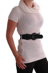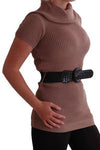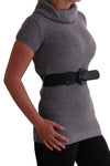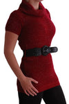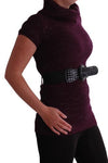 • Roll Down Neckline, Detachable Elastacised Stretch Belt. Embedded Lurex Finish.