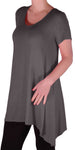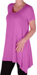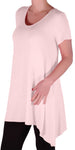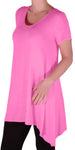 • Short Sleeves, Scoop Neckline, Uneven Hem.