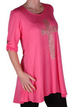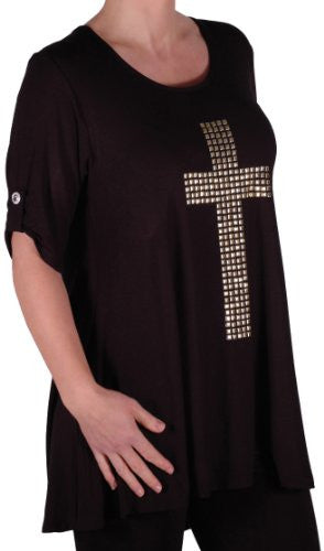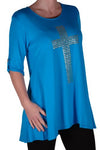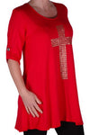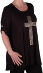 TM PlusGothic Cross Tunic Oversize Scoop Neck Flared Long