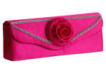 Satin Rose with Diamante Detailing Makes This A Stunning Clutch Bag. Magnetic Press Stud Closure with an Internal Slip Pocket.