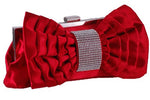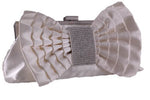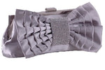 • Pleated Gathered Detailing, with Cute Bow Makes This A Stunning Clutch Bag. Framed Clip Closure with an Internal Slip Pocket.