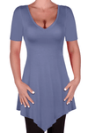 • Features An Asymmetrical Centered Front and Back V Shaped Handkerchief Hemline.