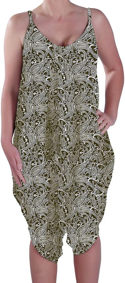 Lagenlook Strappy Jumpsuit Paisley Khaki