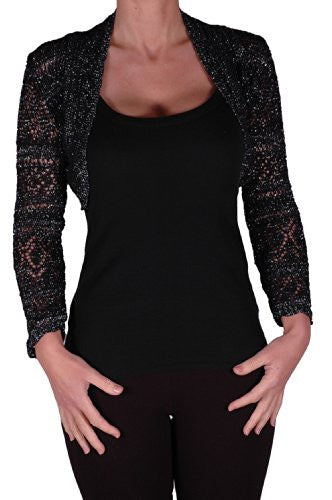 • Long Sleeve Crochet Lurex Knitted Bolero Shrug By EyeCatch.