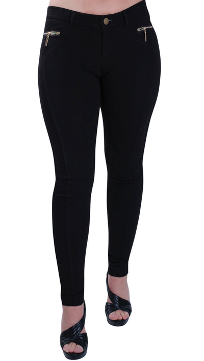 • Twin Zipped Pockets, Zip Fly, Front Button, Twin Back Pockets.
